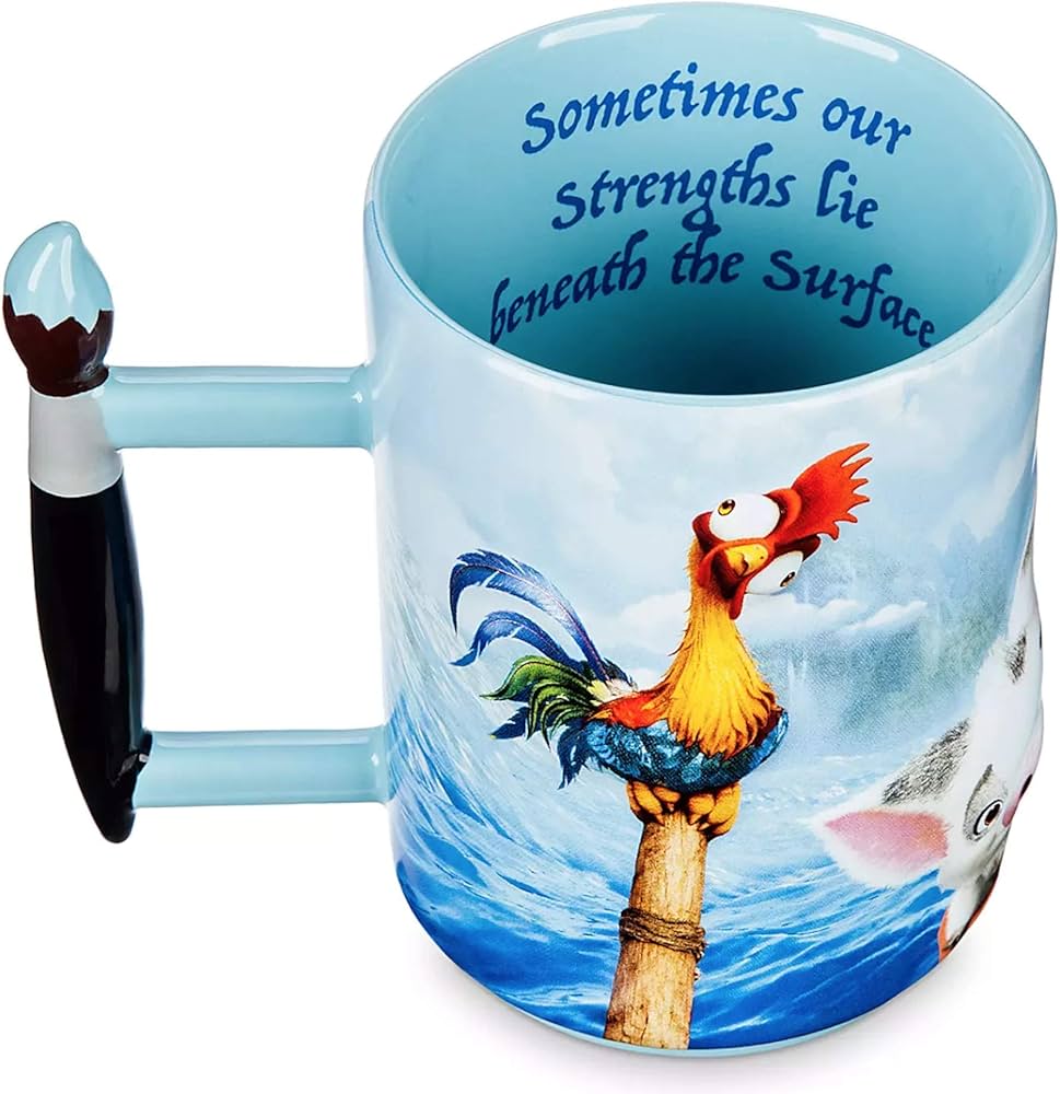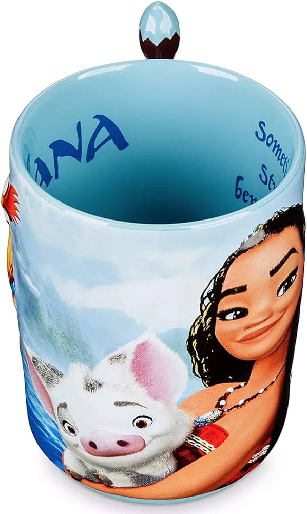 این ماگ زیبا بهطور انحصاری برای پارکها و استراحتگاههای دیزنی طراحی شده است. طراحی برجسته و بافتدار آن، شامل نقاشیهای موآنا، پوا و هی هی در بیرون ماگ است و دسته آن به شکل قلممو طراحی شده است. متن داخل ماگ نوشته: "Moana" و "گاهی اوقات قدرتهای ما زیر سطح پنهان هستند".