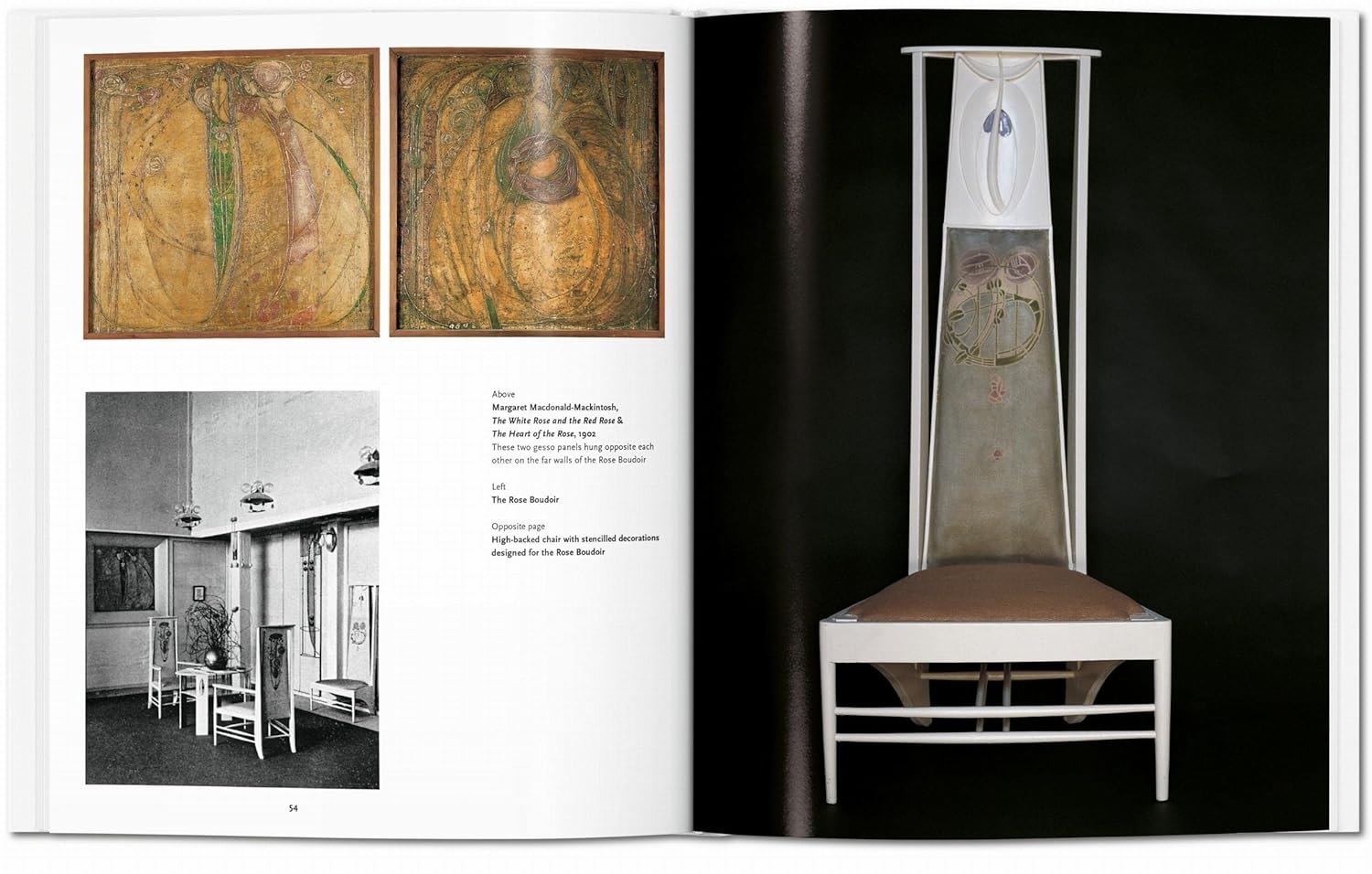 Mackintosh’s avant-garde approach embraced a variety of media as well as fresh stylistic devices. His multi-faceted oeuvre incorporated architecture, furniture, graphic design, landscapes, and flower studies. He embraced strong lines, elegant proportions, and natural motifs, combining an adventurous dose of japonisme with a modernist sensibility for function. He preferred bold black typography, restrained shapes, and tall, generous windows suffusing rooms with light.