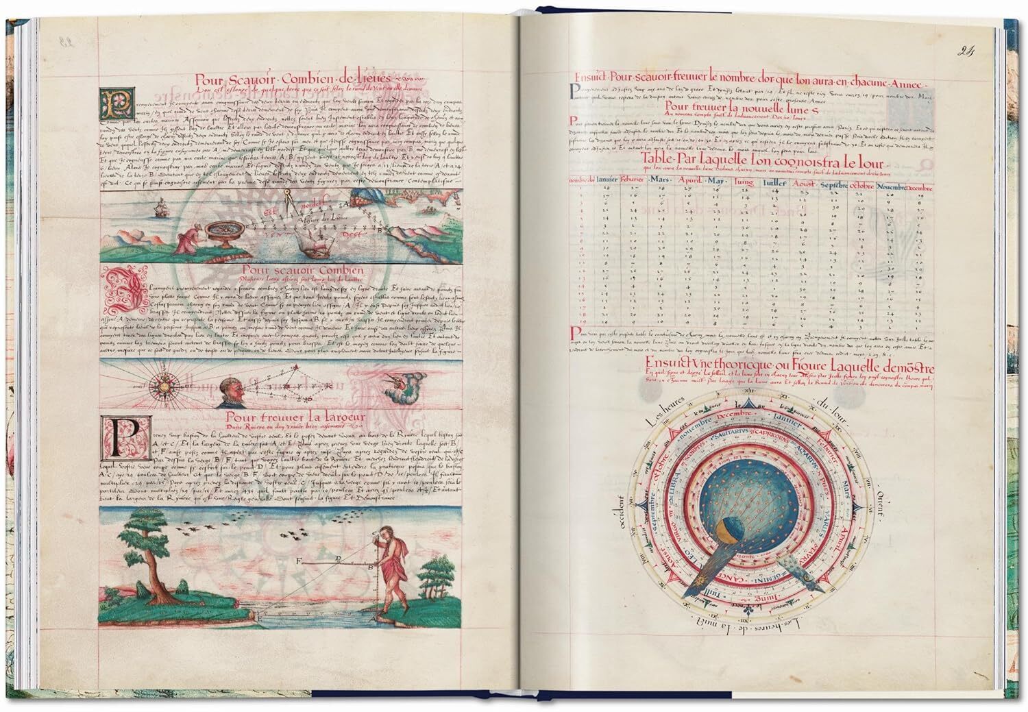 Five hundred years after the historic French seaport of Le Havre was established, TASCHEN presents a facsimile reproduction ofLes premières œuvres de Jacques Devaulx, pilote en la marine, first published by Le Havre-born “Naval Pilot to the King” Jacques Devaulx in 1583. This extraordinary illuminated manuscript, dedicated to the Duke of Joyeuse, collates nautical, astronomical, and cartographic ideas as well as Devaulx’s own extensive notes, observations, and records as a seafarer, hydrographer, cosmographer, and cartographer.An encyclopedic reference for sailors, as well as a magnificent maritime showpiece for his royal employers, the elaborately annotated and decorated folios are a repertoire of naval and cosmographic tools and techniques, including astrolabes, nautical charts of the Atlantic Ocean, tabular statements of diurnal tides, astrological charts, and measurements for solar altitude. They also gather Devaulx’s volvelles, wheel charts made of rotating parts that are today considered an early example of the paper analog computer. Together, the folios encapsulate the state of knowledge at a time when sailors pushed the limits of sea exploration and offer a glimpse into the practical daily requirements of Renaissance seafaring.This edition of Devaulx’s stunning document, produced in collaboration with the Bibliothèque nationale de France, reproduces each of the 31 folios in all their brilliant art and science, including the original colorful illuminations, in particular the volvelles. The volume features essays by Jean-Yves Sarazin and Gerhard Holzer, as well as commentaries from a team of experts coordinated by Élisabeth Hébert and Véronique Hauguel-Thill, contextualizing Devaulx’s work with fascinating insights into 16th-century seafaring and exploration.