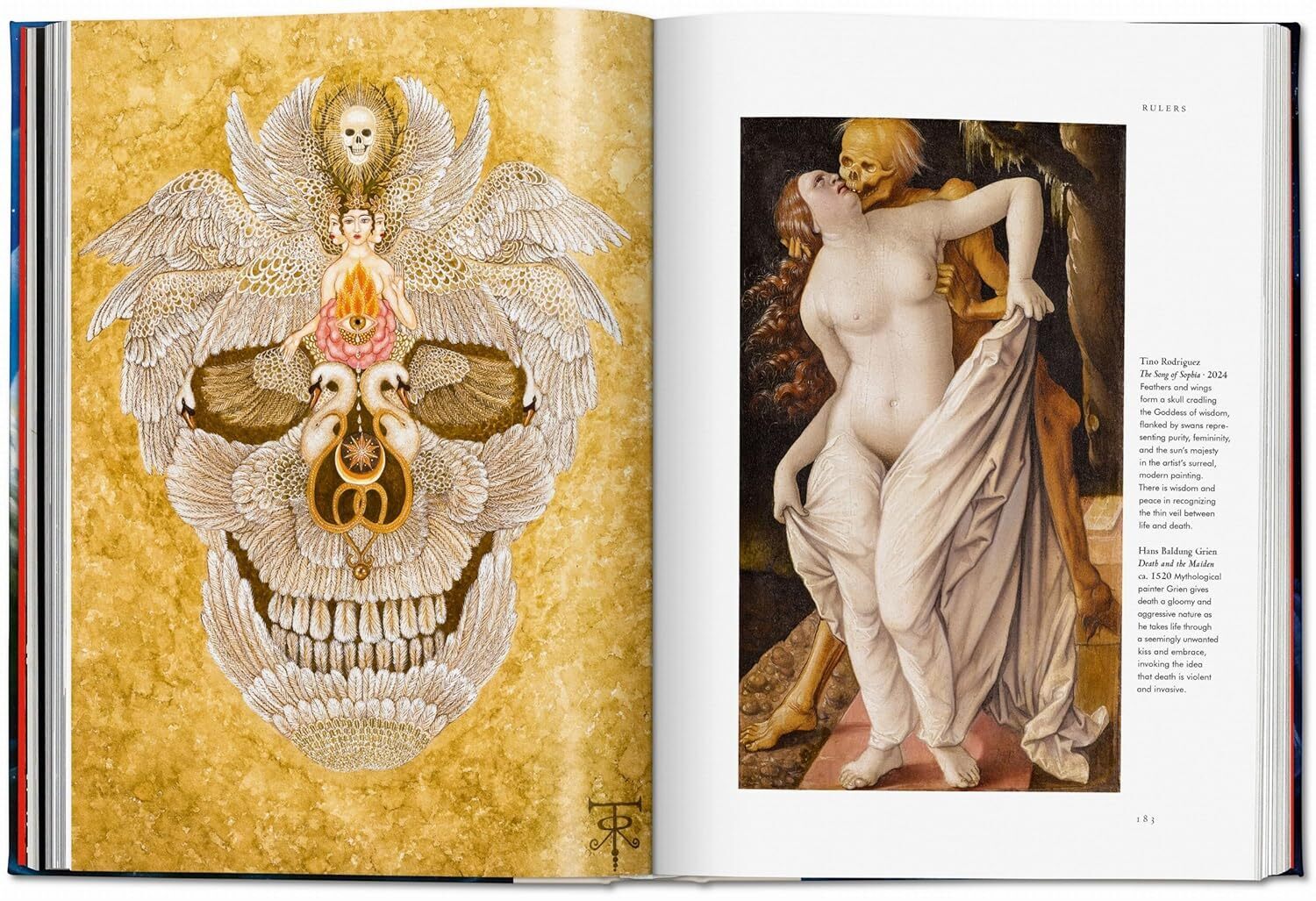 A voyage through mysterious and haunted lands, the sixth volume of The Library Esoterica delves into the art, rituals, and global mythologies of the spirit realms. Unearthing our complex beliefs around death, rebirth and resurrection, we explore the art, traditions and ancient stories of the afterlife. Through interviews with scholars and practicioners, insightful essays and over 400 works of visionary art, Spirit Worlds delves into the shadows of the supernatural, from dark domains of ghosts and demons to the light-filled lands of angels and celestial beings. Across more than 500 pages, we celebrate the ways in which we connect with both our ancestors and with ourselves, as we worship, mythologize and honor our dead. We study the rites of death around the globe, highlighting the ancient monuments and sacred temples we build out of our sorrow. We showcase the altars we create and the communities we nurture as we share our grief with our gods. We dive into the rituals that connect us to those we’ve lost. And we decipher the messages communicated to us from the other worlds by mediums and prophets, through the elaborate séances of the Spiritualists, and in the storied words of oracles and fortunetellers bent at their crystal balls. And finally, we showcase artworks that that channel not only the muse, but the unknown, eloquent voices and visions from the other side. In this expansive volume, we board the ferry across the storied river and enter the gloomy passages between lands, stepping across the threshold—to part the most sacred of veils.