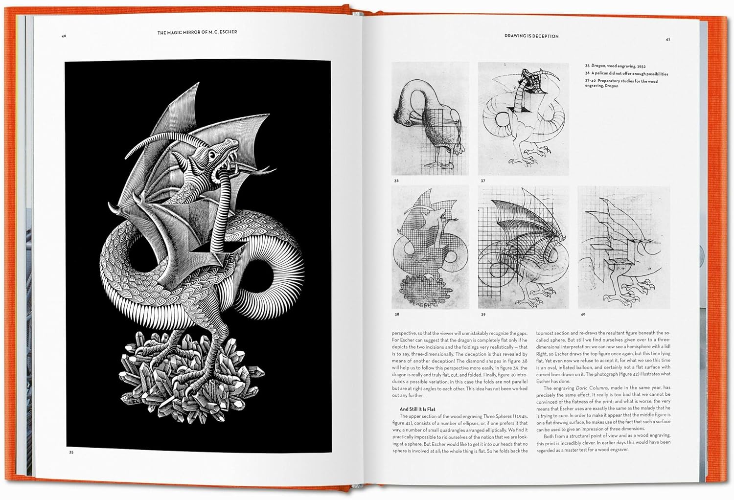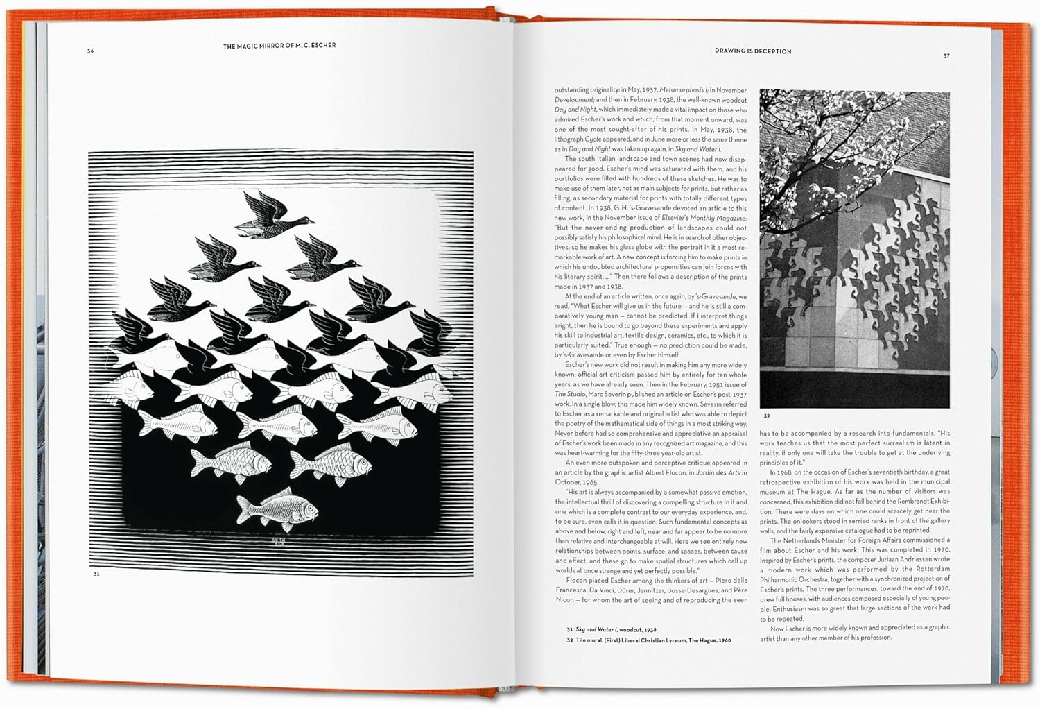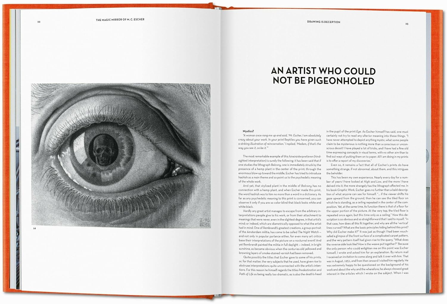 Long before the first computer-generated 3-D images, Escher was a master of the third dimension. His lithograph Magic Mirror dates as far back as 1946. By taking such a title for the book, mathematician Bruno Ernst stressed the enrapturing spell Escher’s work invariably casts on those who see it. Ernst visited Escher every week for a year, systematically talking through his entire oeuvre with him. Their discussions resulted in a friendship that gave Ernst intimate access to the life and conceptual world of Escher. Ernst’s account was meticulously scrutinized and made accurate by the artist himself.
