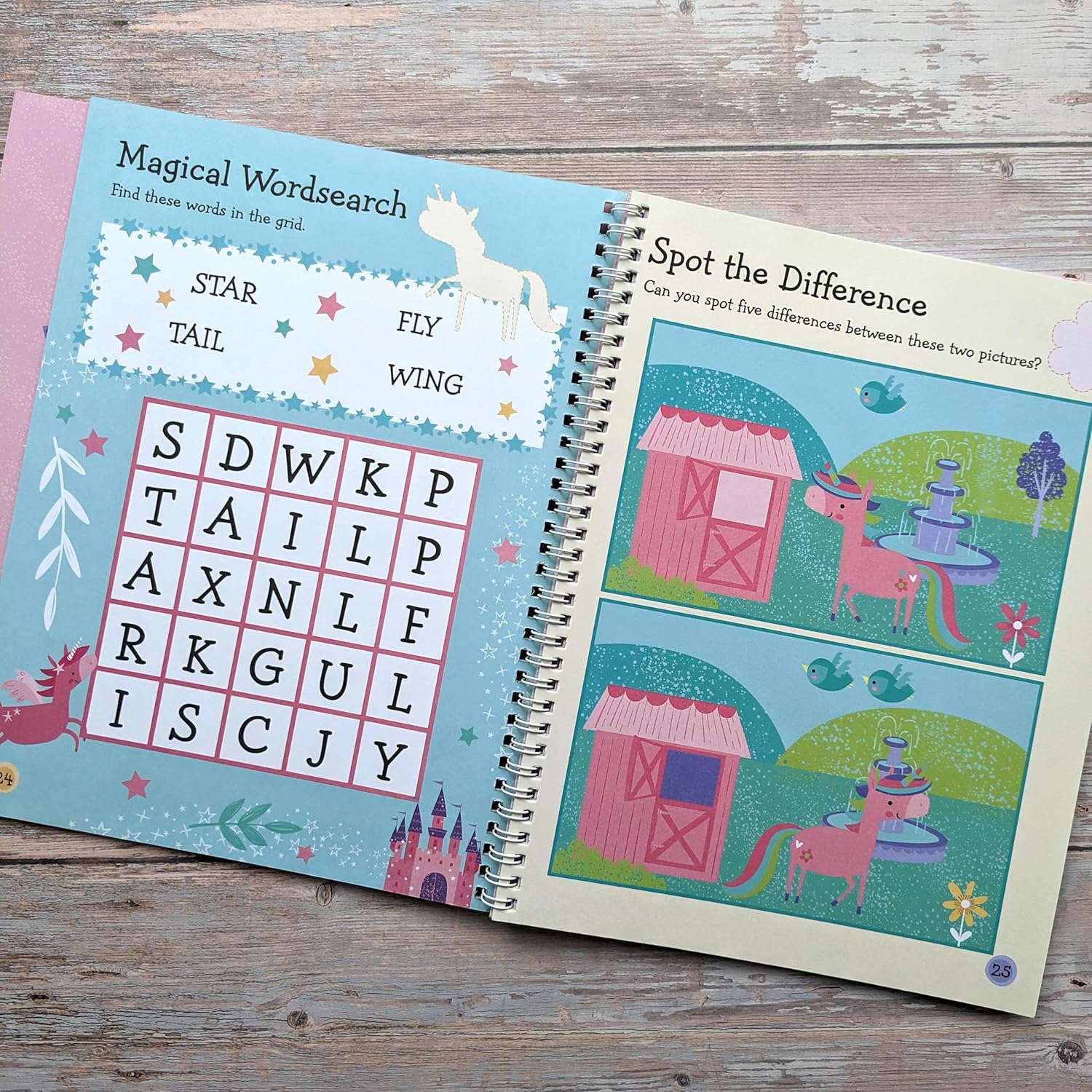 There are hours of fun to be had with this gorgeous unicorn themed big sticker book! Comes with over 80 stickers, a fold-out scene to decorate and lots of fun activities to complete! Children will enjoy hours of fun with this fun activity book. The book includes 80 fun stickers and games and puzzles. There are colouring activities, counting games and dot-to -dot games along with look and find games and fun mazes. This Big Sticker Activity Book is perfect for travel, rainy days, or quiet time at home.