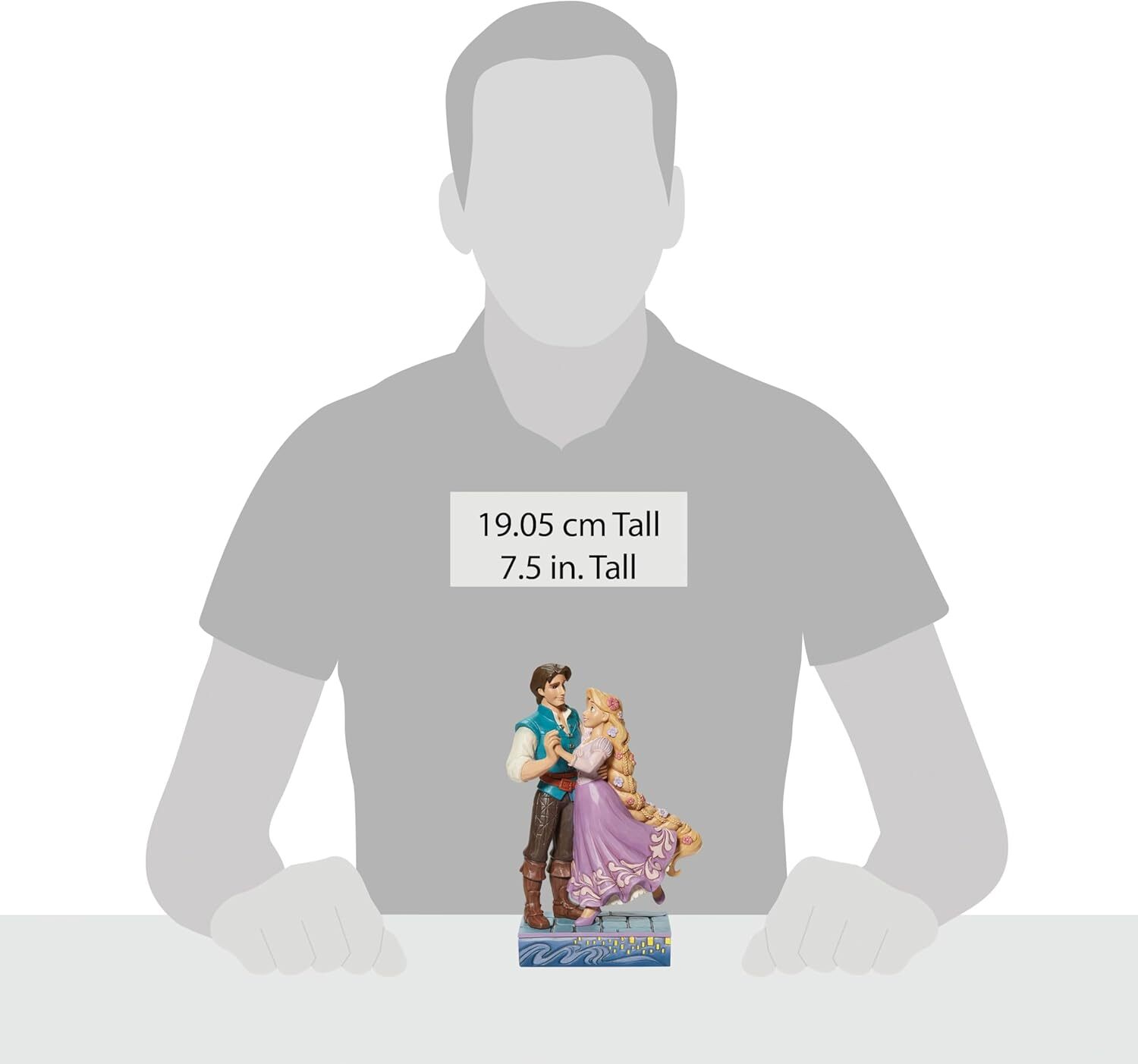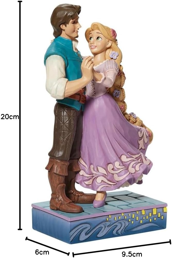 Based on the beloved characters from the 2010 film Tangled, this piece showcases Rapunzel & Flynn Rider happy together. Designed by award winning artist Jim Shore, hand crafted using high quality cast stone and hand painted. Packaging: Full colour, fully branded gift box with photo