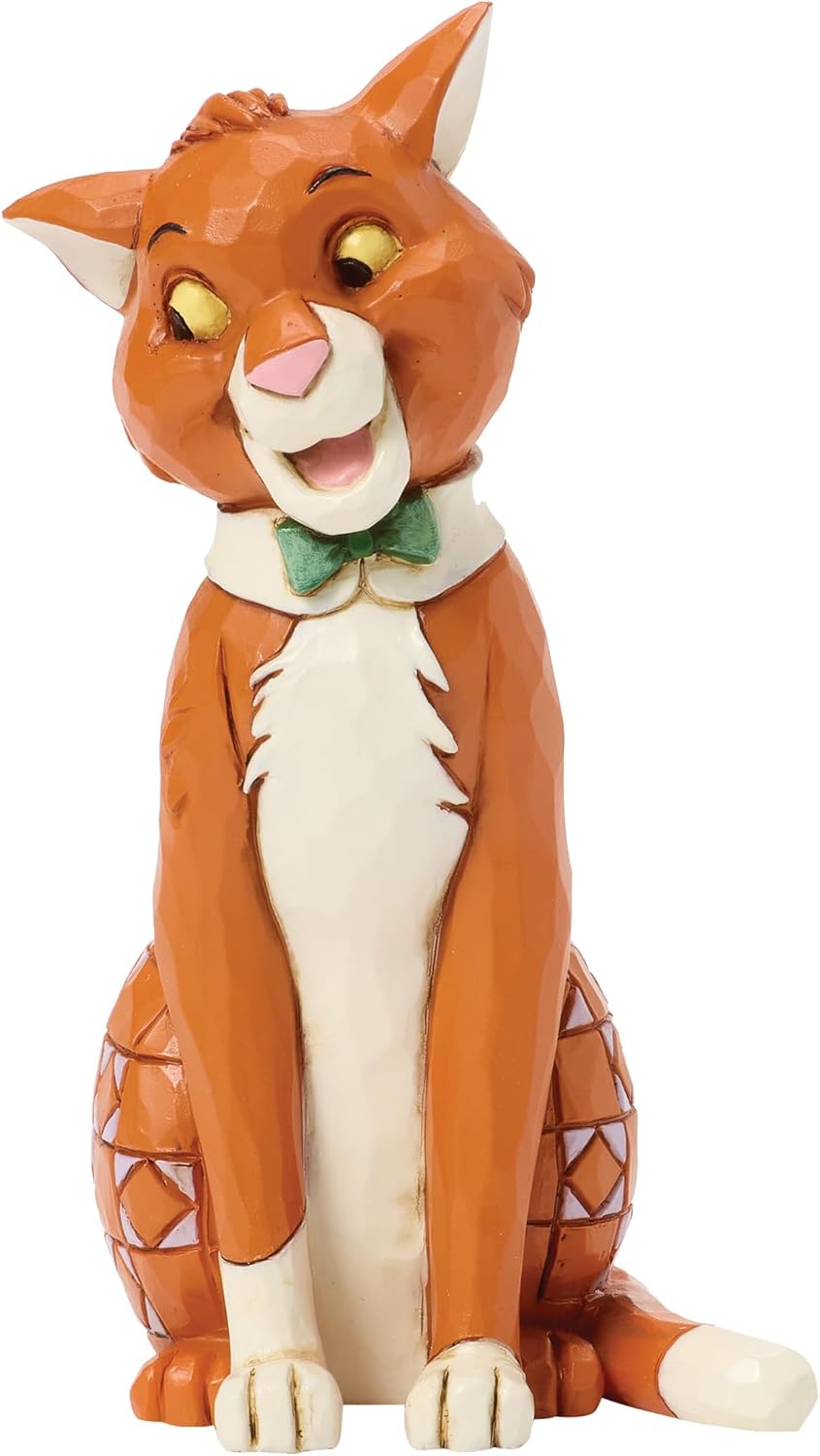From the Disney Traditions created by Jim SHORE comes Thomas Omary from the Stylish Cat movie. The Stylish Cat movie celebrates the 55th anniversary in 2025. Thomas Omary stray cats who find a new house with Dutchess and kittens. She wears a stylish moss green bow tie and poses with loving eyes.