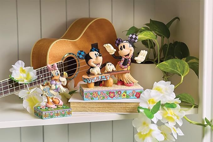 - Mickey and Minnie are now available from Disney Traditions by Jim SHORE. Minnie rocks the hula skirt and Mickey plays the guitar. This is a wonderful piece of art that you can enjoy a tropical paradise with each other. Also recommended as a gift for yourself, friends and family.