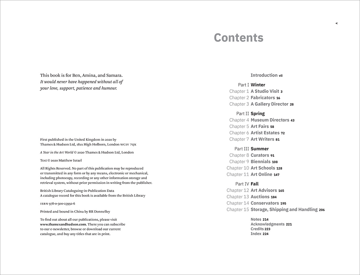 Join curator, writer, and art historian Matthew Israel on a yearlong journey through the contemporary art world. From Los Angeles to Hong Kong via Venice, Basel, Paris, and New York, from biennials in summer to auction houses in fall, Israel reveals the joys and anxieties of this sometimes baffling, often intimidating field. Blending an insider’s knowledge with in-depth profiles, interviews with key art world figures, and a keen ear for an anecdote, A Year in the Art World is a compelling, generous companion for any art lover curious about how art is being made, valued, sold, cared for, and looked at today.