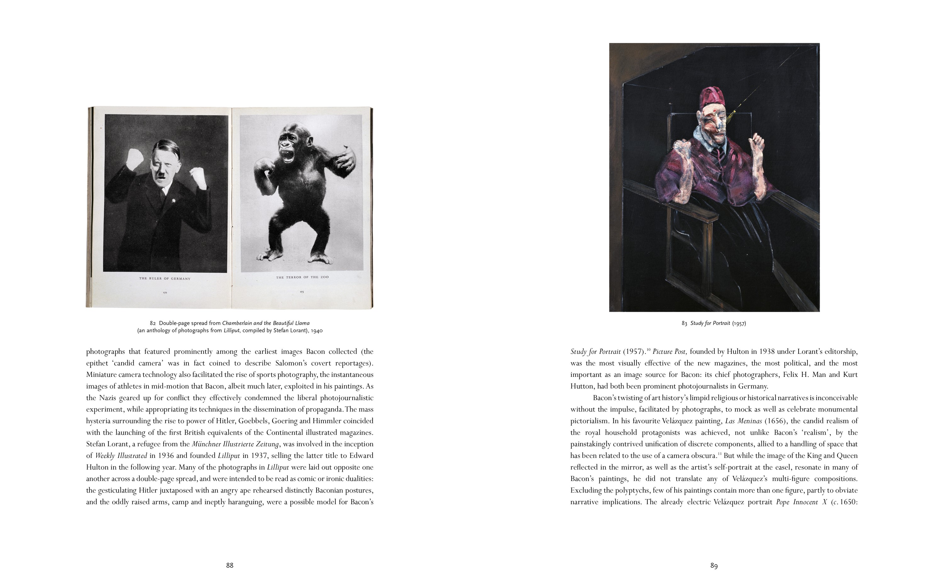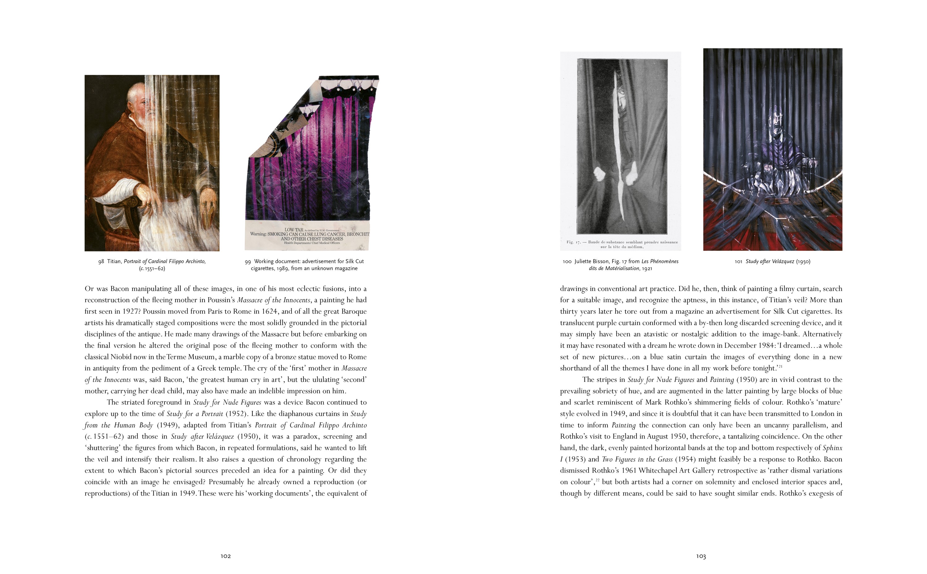 Key influences, including the masters Velázquez, Poussin and Rodin, the photographer Eadweard Muybridge and the film director Sergei Eisenstein, are given close consideration. Bacon’s work is examined in relation to the precedents set by other artists working in the tradition of making use of mechanical reproductions, including Pablo Picasso and Walter Sickert, and in the context of his contemporaries Lucian Freud, Mark Rothko, Graham Sutherland and Patrick Heron.