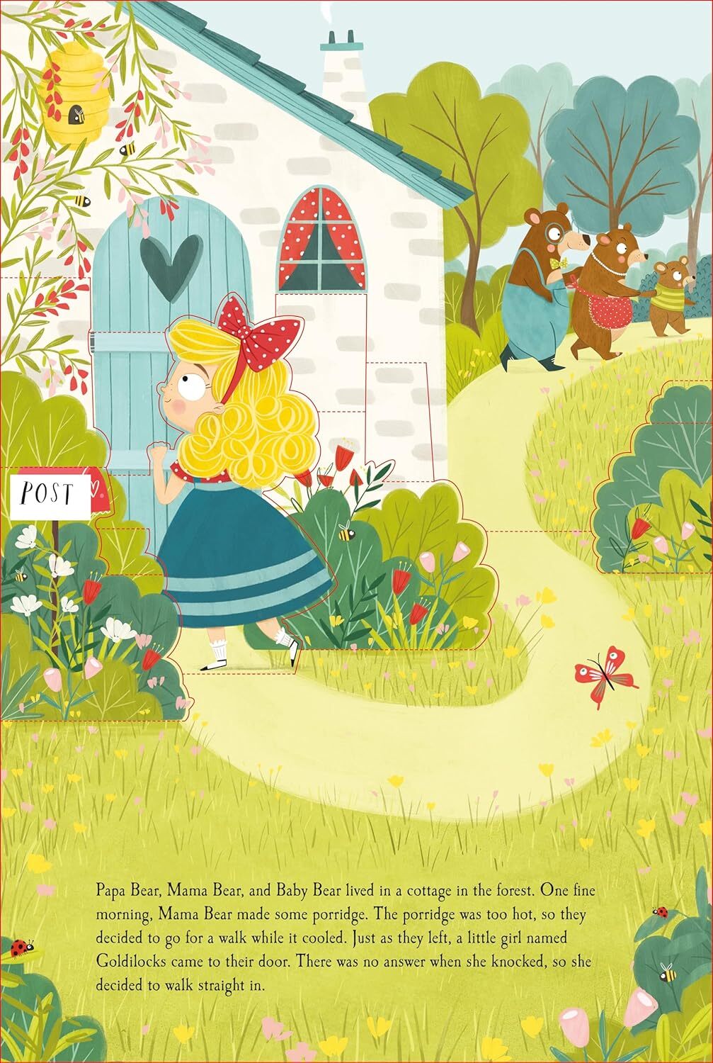 Experience the enchanting tale of Goldilocks and the Three Bears in this captivating pop-up book. While Mama, Papa, and Baby Bear are out for a forest stroll, the curious Goldilocks discovers their cottage. Upon their return, the bears find an unexpected visitor.
