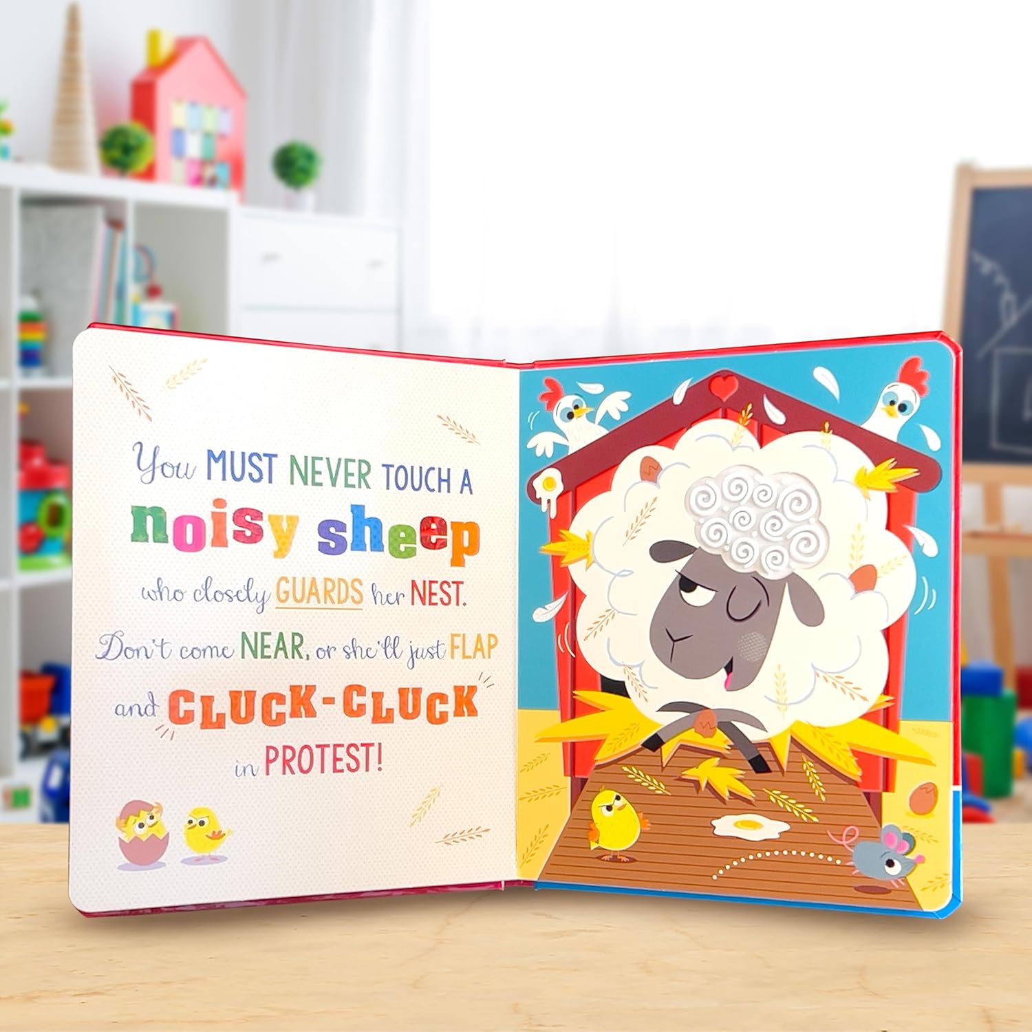 Discover the bumpy silicone touches as you push the sound buttons to listen to the animal sounds on every page. Join the fun in this rhyming book, and enjoy touching all of the bumpy animals... if you dare!