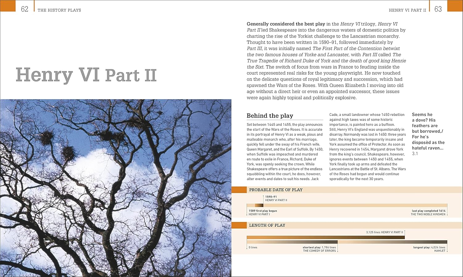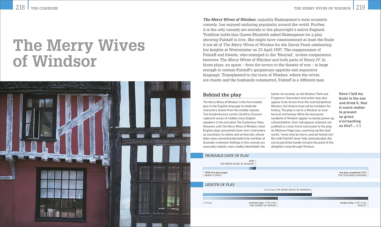 Unravel the history, themes, and language of Shakespeare's plays, poems, and sonnets with this beautifully illustrated guide to his life and works. Comedy and romance, history, and tragedy, Shakespeare's canon has it all. Some 400 years after they were written and first performed, his works still remain fresh and relevant today. Shakespeare: His Life and Works is an accessible and lavishly illustrated celebration of the Bard himself and his 39 plays, great sonnets, and narrative poems. Themes, plots, characters, and language are brought to life with act-by-act plot summaries, resumes of main characters, and in-depth analysis of Shakespeare's use of, and influence on, the English language. Entries also explore Shakespeare's plays, poems, and sonnets in the context of his life and the world of Elizabethan and Jacobean theatre, and reveal his sources and inspirations, further enriching your experience of his work, be it on the page, stage, or screen. Shakespeare: His Life and Works is the perfect gift for existing Shakespeare fans, and anyone looking to find out more about the work of the world's most celebrated playwright.