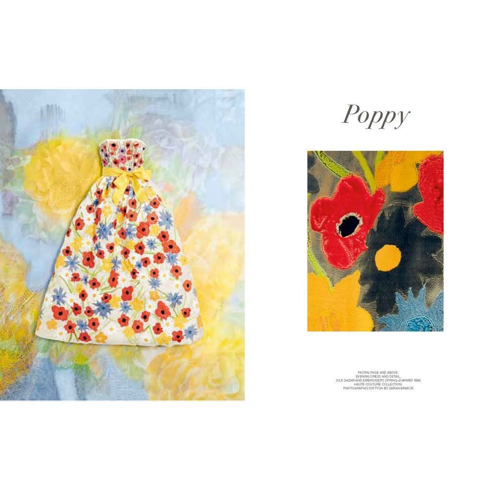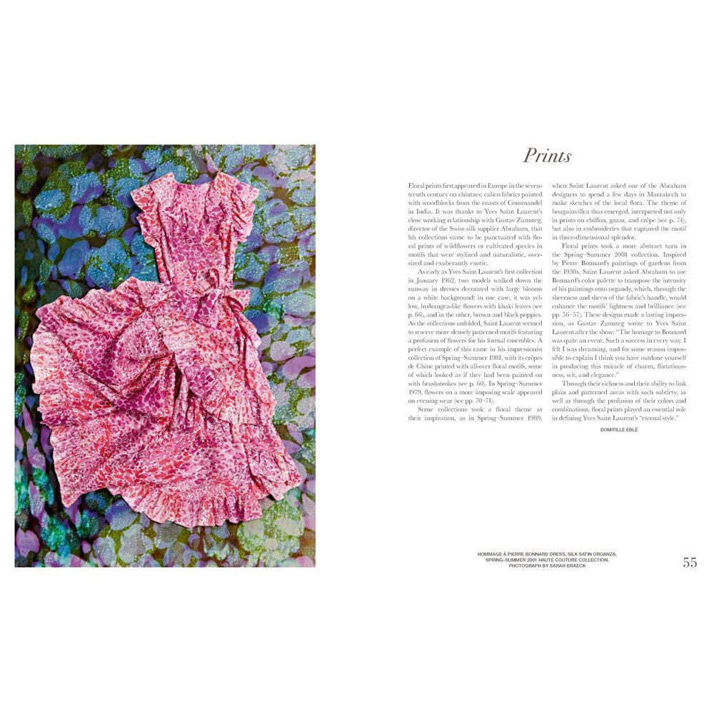 Yves Saint Laurent's passion for flowers and gardens was the source of endless inspiration. From a thousand and one rose buds to sprigs of lily of the valley, from an avalanche of bougainvillea to delicate poppy blooms, and from sheaves of wheat to majestic lilies, he metamorphosed nature in his creations. Employing flowers as a palette of patterns and techniques, he adorned women in floral appliqués, prints, and embroideries.