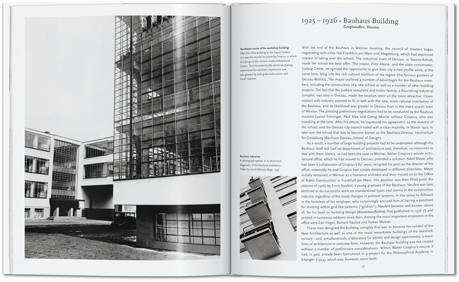 Walter Gropius (1883–1969) set out to build for the future. As the founding director of the Bauhaus, the Berlin-born architect had an inestimable influence on our aesthetic environment, championing a bold new hybrid of light, geometry, and industrial design, as dazzling today as it was a century ago.In this essential architect introduction, we survey Gropius’ evolution and influence with 20 of his most significant projects, from the Bauhaus Building in Dessau, Germany, to the Chicago Tribune Tower and Harvard University Graduate Center, completed after Gropius’s exodus to the United States in 1937. We explore his role both as an architectural practitioner, and as a writer and educator, not only as a Bauhaus pioneer, but also, along with Ludwig Mies van der Rohe, as a leading proponent of the International Style.Along the way, we see how many of Gropius’s tenets remain benchmarks for architects, designers, and urbanists today. Whether in his emphasis on a functional beauty or his interest in housing and city planning, Gropius astounds in the agility of his thinking as much as in the luminous precision of his work.