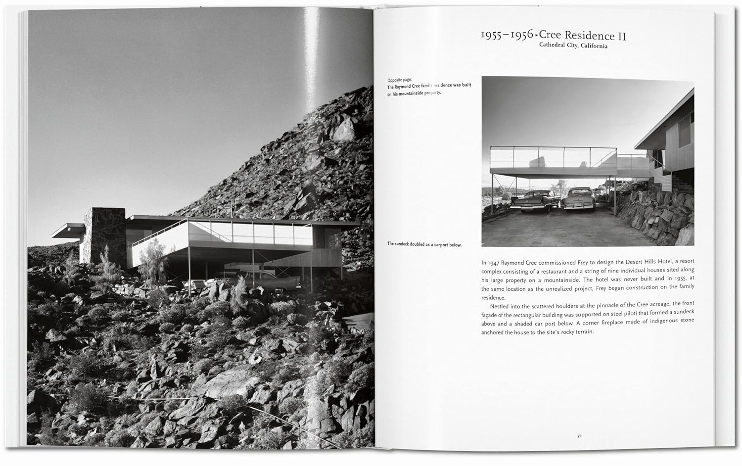 Architect Albert Frey (1903–1998) saw a modernist utopia in the desert. Born in Zurich, he studied in Europe with Le Corbusier before moving to the United States in 1930, convinced it was the land of architectural opportunity. On a visit to Palm Springs, he fell under the desert spell. It was here, amid the arid and empty landscape, that he could truly envisage a perfect modern future.Like fellow Californian luminary, John Lautner, Frey would spend the rest of his career nurturing the consonance of architecture and nature: studying the fall of sunlight and rain, and merging aluminum, steel, and glass with the boulders and sands of the West Coast wilds. His vision centered in particular on Palm Springs, capitalizing on the city’s postwar population boom to create a bastion of the sleek, leisurely modernism that defines midcentury California.In this dependable architect introduction, we follow Frey’s long and prestigious career from his European beginnings through to the apogee of his Californian practice, taking in his notes on De Stijl, Le Corbusier, and Bauhaus, and exploring the stylistic, material, and geographic makings of his unique “desert modernism.”
