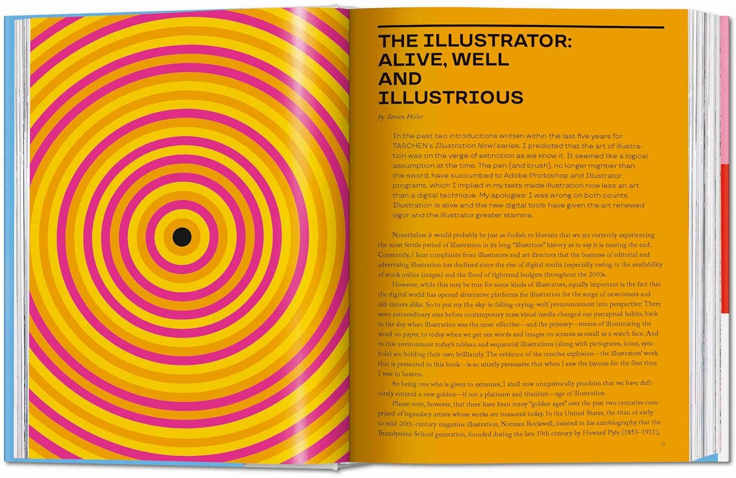 There were extraordinary eras before mass media changed our viewing habits, back in the day when illustration was the primary means of illuminating the word on paper—all the way to today, when we get our words and images on screens as small as a watch face. In this environment, today’s designers and artists are holding their own brilliantly. Illustration is more free and varied than ever, and it is ubiquitous in all kinds of media, from paper to screen to books, packages, clothing, cars, and restaurants.