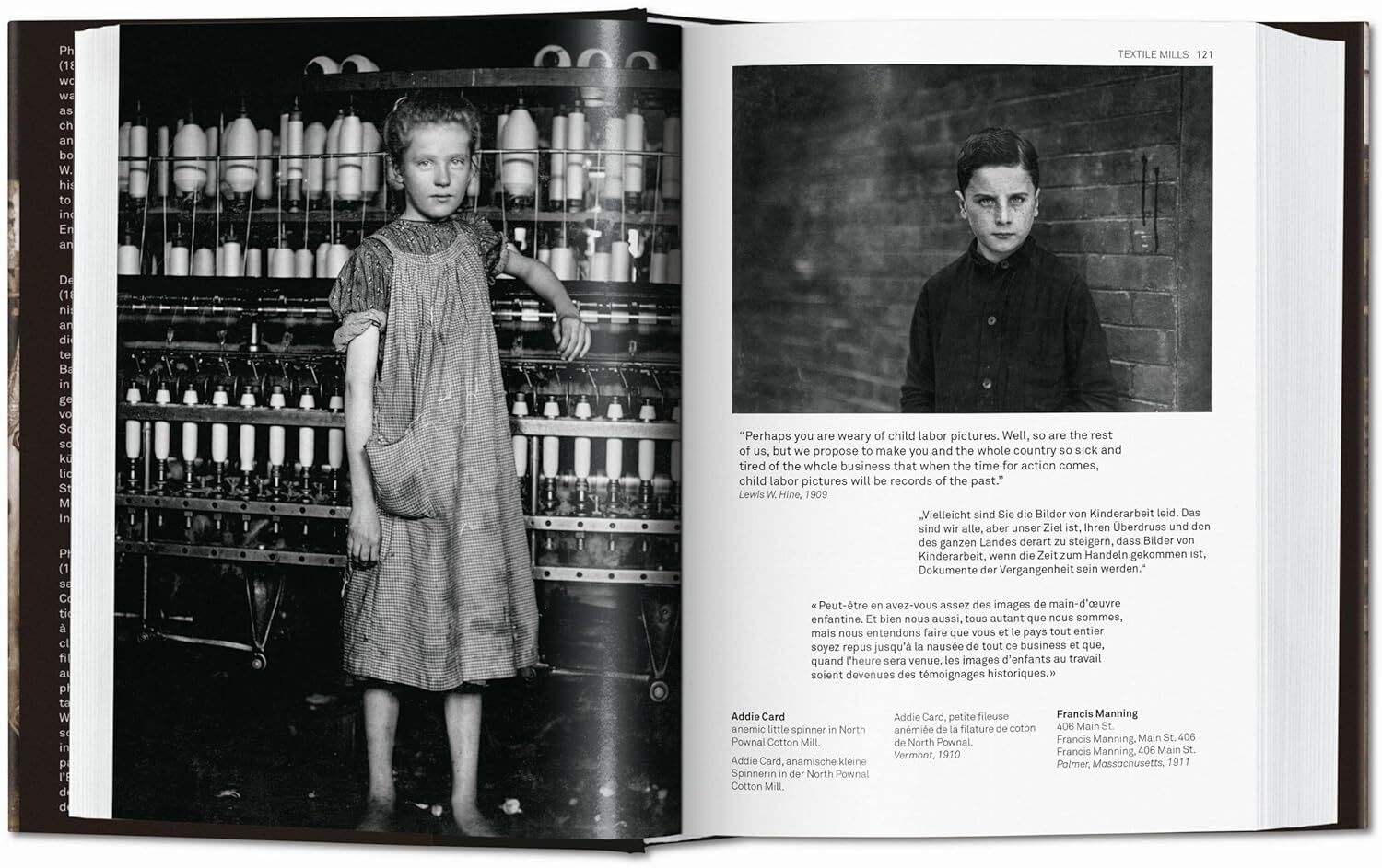 Photographer, teacher, and sociologist Lewis W. Hine (1874–1940) shaped our consciousness of American working life in the early 20th century like no other. Combining his training as an educator with his humanist concerns, Hine was one of the earliest photographers to use the camera as a documentary tool, capturing in particular labor conditions, housing, and immigrants arriving on Ellis Island. His images, including those of children in cotton mills, factories, coal mines, and fields, became icons of photographic history that helped to transform labor laws in the United States.