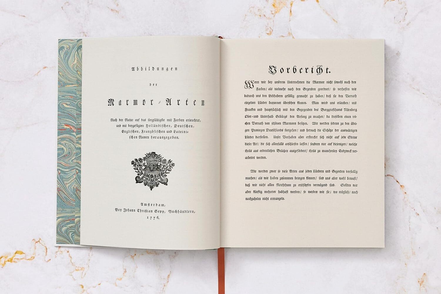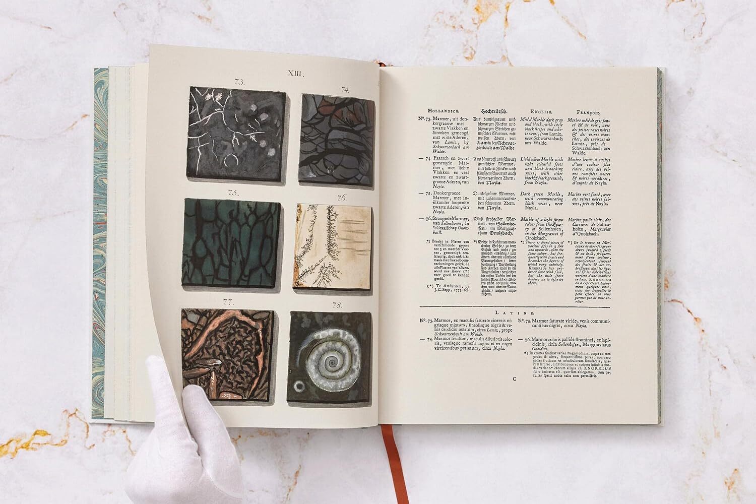 An exhaustive compendium of marble, Afbeelding der Marmor Soorten (A Representation of Marble Types) depicted 570 samples across 100 colour plates, accompanied by texts in five languages. Published in 1776 at the peak of the Enlightenment, it is regarded, rightly, as one of the finest illustrated scientific books of the era.Over the course of the 18th century, beautiful books that categorised, annotated, and illuminated the Enlightenment pursuit of learning across Europe had become increasingly popular. Knowledge was everything and everywhere, and these books provided it for those not wealthy enough to build their own personal collections of rare and exotic objects. Marmor Soorten, one such edition, took the standards of both aesthetics and categorisation to a whole new level.Jan Christiaan Sepp and his father Christian – himself a respected collector – had already earned a reputation for luxury publications on scientific themes, starting with Christian’s own Nederlandsche Insecten (Insects of the Netherlands). But it was his son who created the visual masterpiece Marmor Soorten, revising an existing German publication from 1775 by Adam Ludwig Wirsing. The result – published in 11 instalments to a print run of around 100 – was among the finest examples of its kind.Featuring new photography to depict the intricate details of the marble samples, this edition brings an unknown treasure back to relevance. The plates, each meticulously hand-coloured and arranged with painstaking precision, have an abstract-art feel that gives this volume an almost modern slant.This edition reproduces the pages from two copies of Marmor Soorten held at the State and University Library in Dresden and the Getty Research Institute in Los Angeles. Reprinting the work in full for the first time, The Book of Marble brings that rare blend of beauty and encyclopedic knowledge to a wider audience.