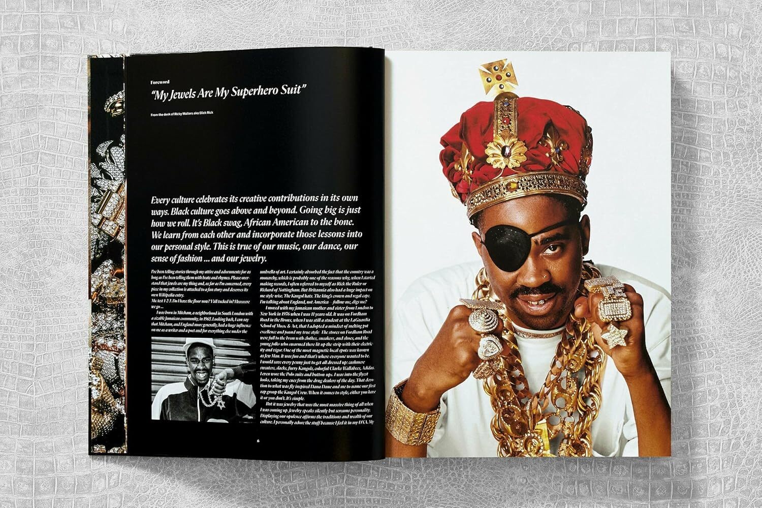 A foreword by hip-hop superstar Slick Rick and essays by A$AP Ferg, LL COOL J, Kevin “Coach K’ Lee and Pierre “P” Thomas of Quality Control Music take us on personal journeys into their jewelry universe.
