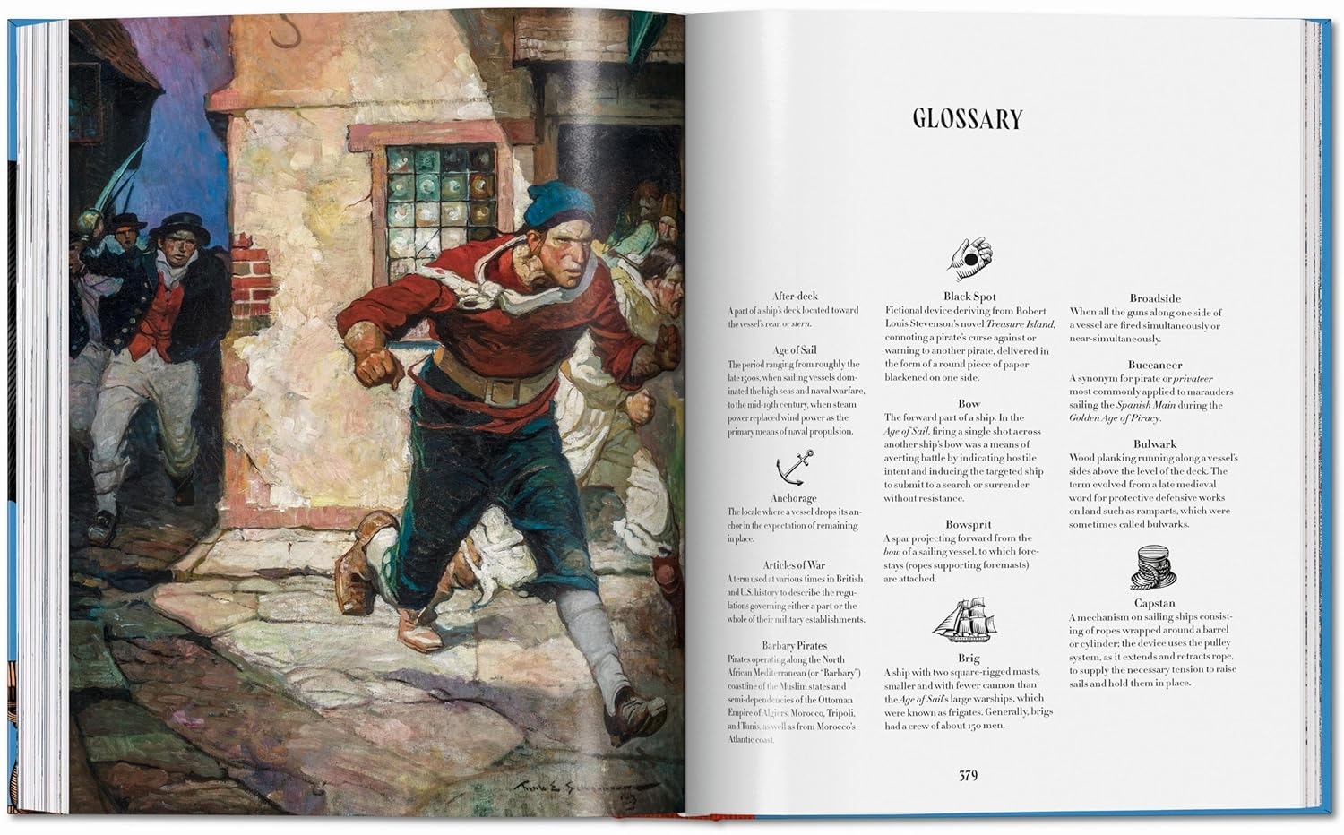 The tales are enlivened by arresting illustrations at every turn, including those by artists from the Brandywine School such as Pyle, the undisputed father of pirate illustration, and his students N. C. Wyeth and Frank Schoonover. This edition features a number of original artworks by these illustrators, drawn from private collections, as well as contributions by other artists from illustration’s so-called “Golden Age” of the late 19th and early 20th century. Scene-setting vignettes for each story were executed by the illustrator Michael Custode.