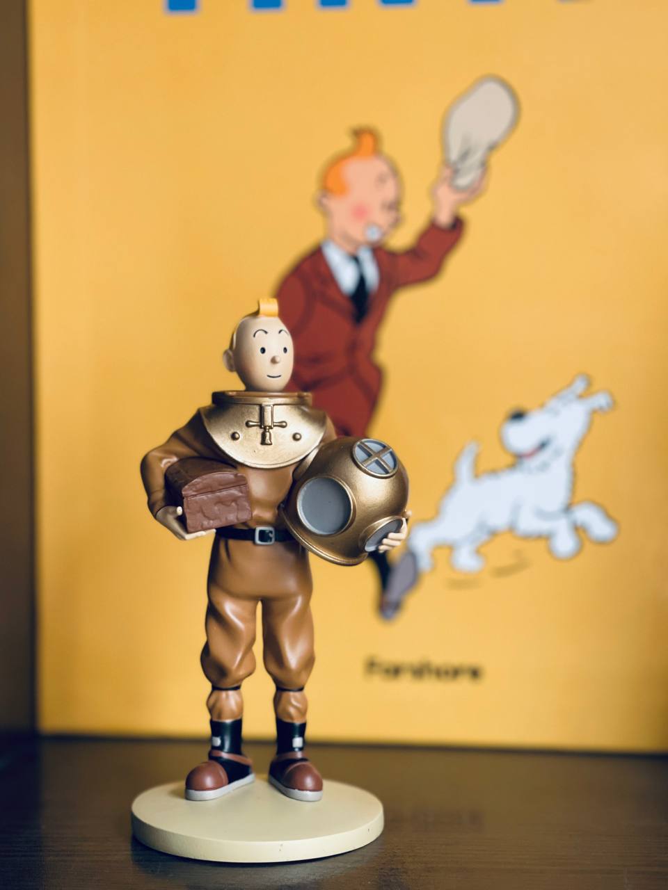 این فیگور دستنقاشیشده از تنتن، مربوط به ماجرای «گنج راکهام سرخ» است؛ جایی که این خبرنگار جوان بلژیکی با استفاده از ماسک غواصی به اعماق دریا میرود تا گنج کشتی «یونیکورن» را در کف دریا پیدا کند.
