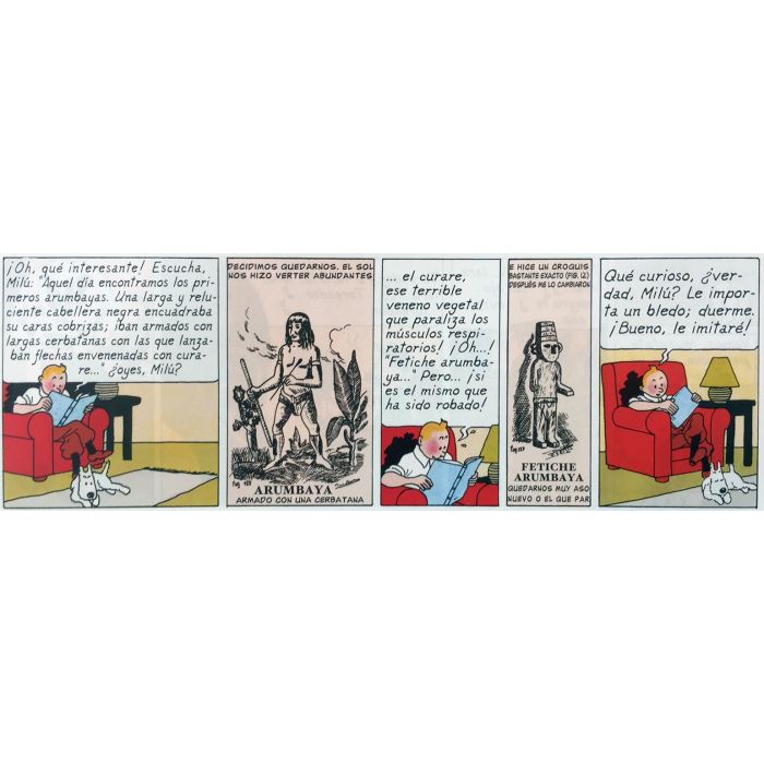 The story begins with the theft of a sacred tribal object at the Museum of Ethnography. Tintin soon gets involved alongside the detectives, the Thompsons. From the outset, he seeks to know more about the country of Arumbayas, region of origin of the precious statue.