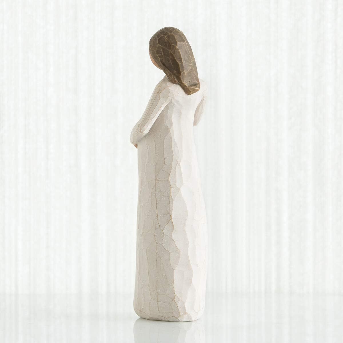 Willow Tree is an intimate line of figurative sculpture that speaks in quiet ways to heal, comfort, protect and inspire. Expressions are revealed through gestures only…a tilt of the head, placement of the hands, a turn of the body. Simplicity of form and the absence of facial features signify Willow Tree. Susan Lordi hand carves each original figure before they are carefully reproduced in hand decorated resin to capture her original style and sculpting technique. Susan tries to keep the interpretation of Willow Tree open, hoping to make it more personal, and allowing the individual to decide its meaning.